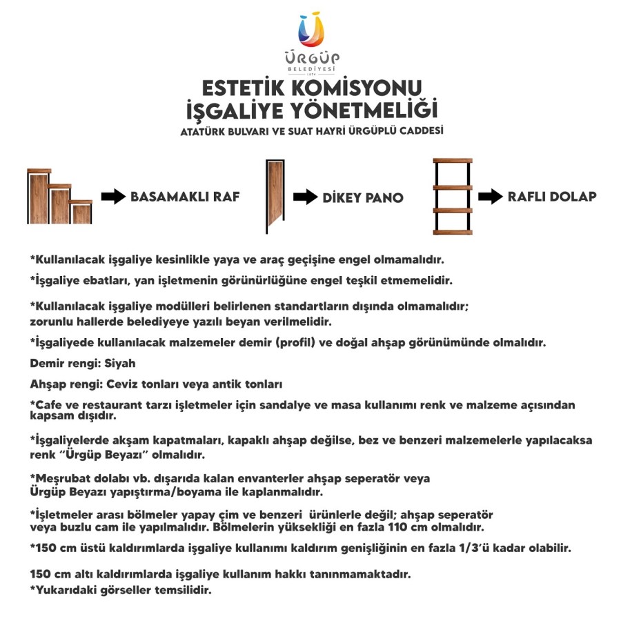Ürgüp Belediyesi Meclisi’nin Kasım ayı olağan toplantısında oy birliğiyle alınan karar doğrultusunda, işgaliye kullanım sınırlarına ilişkin yeni düzenlemeler hayata geçirildi. Belediyenin Estetik Komisyonu tarafından hazırlanan çalışma kapsamında, Atatürk Bulvarı ve Suat Hayri Ürgüplü Caddesi’nde uygulamalar başladı.